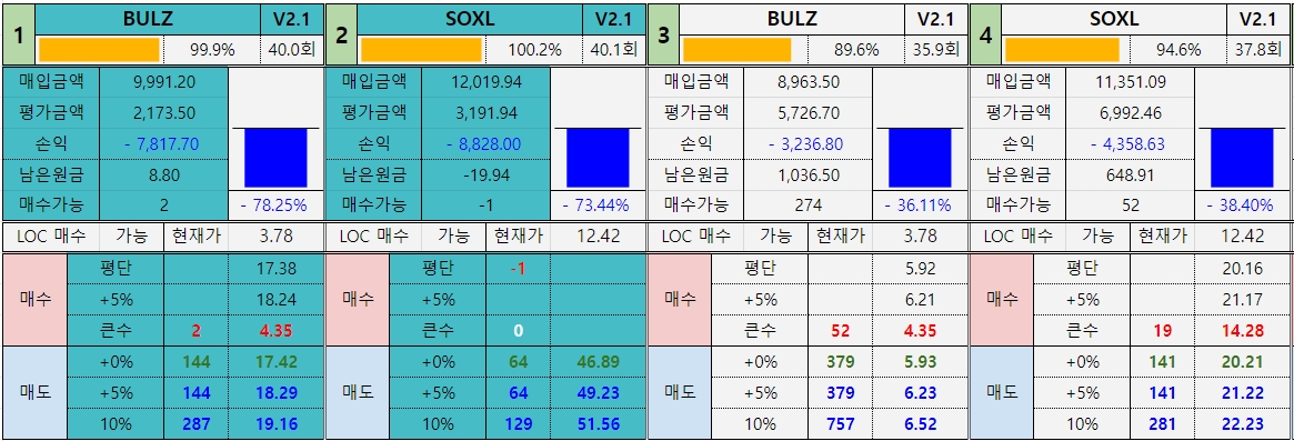 *진도율 2 : BULZ(영혼) : 89.6%, SOXL(영혼) : 94.6%