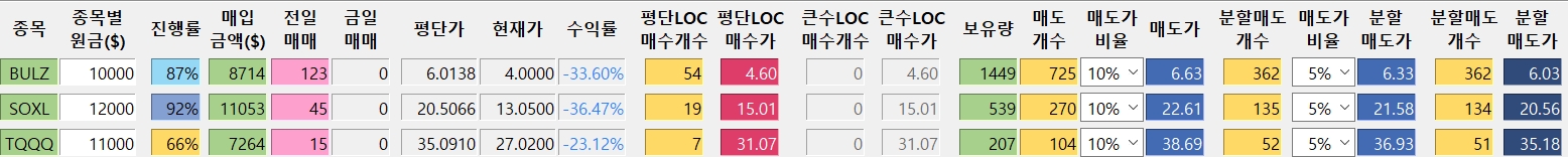 매도 | LOC평단 +0% | 0 | 0 | |||