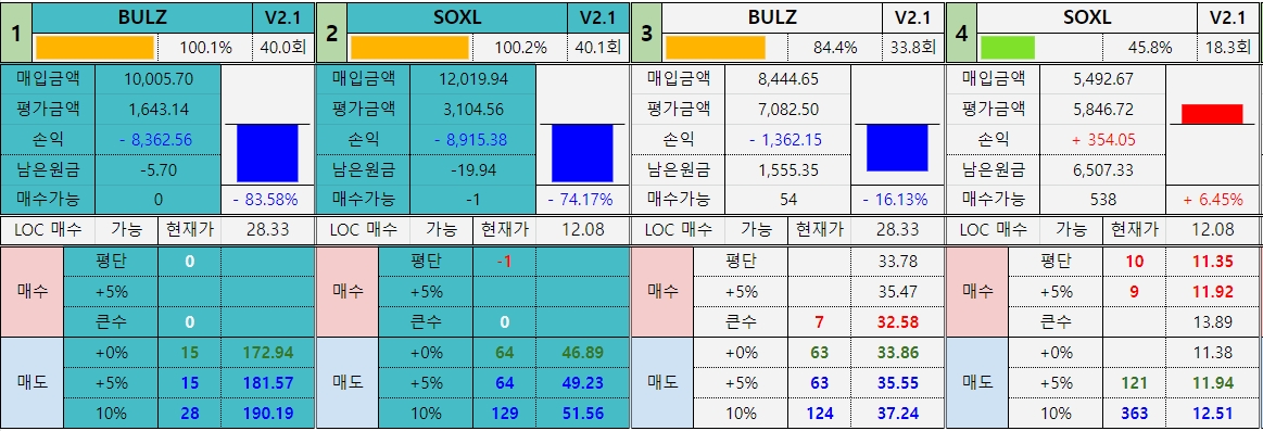 *진도율 2 : BULZ(영혼) : 84.4%, SOXL(영혼) : 45.8%