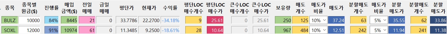 *진도율 1 : BULZ : 100.2% → 99.9%, SOXL : 100%