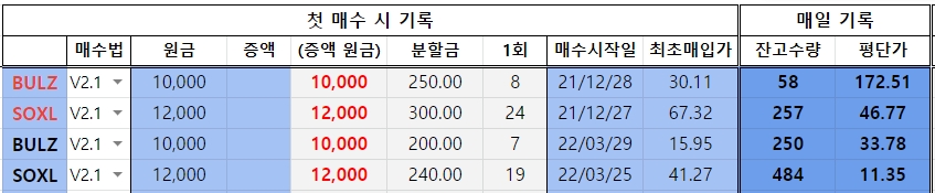 - 22.03.28 전량매도 (22.04.04 재진입!!!) - 중간 변형 매수법으로 변경..
