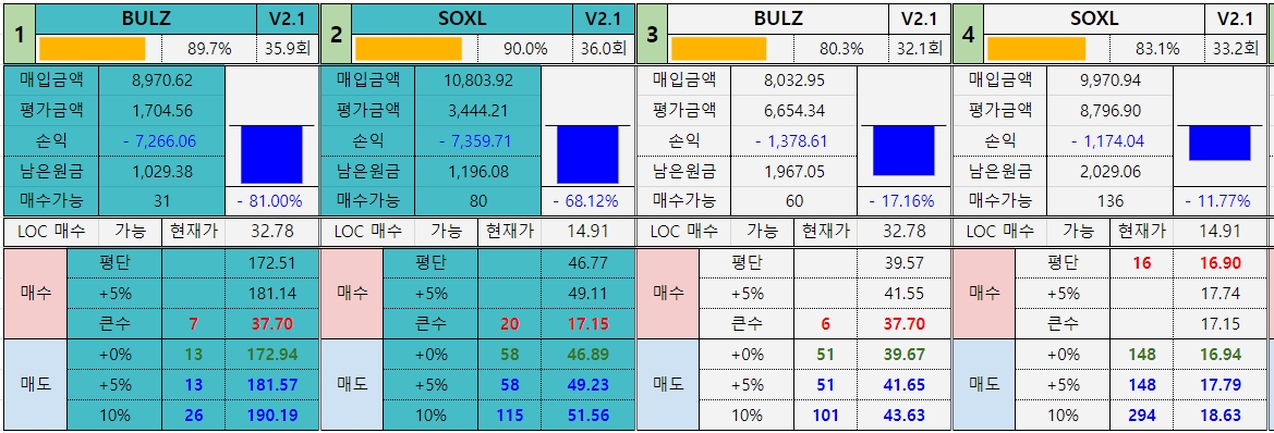 *진도율 2 : BULZ(S1) : 80.3%, SOXL(S1) : 83.1%