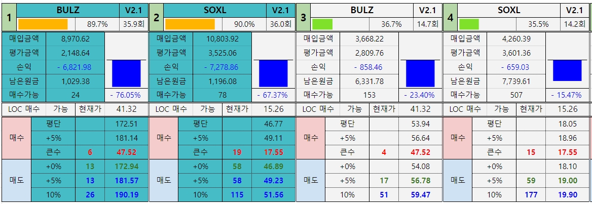 *진도율 1 : BULZ : 89%, SOXL : 90% -