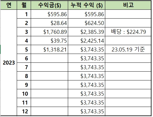 14번째 진입 23.03.24 @$25.73x10EA // 23.03.31 : 전량매도 => 1주일 대기(23.04.07 다시 시작)