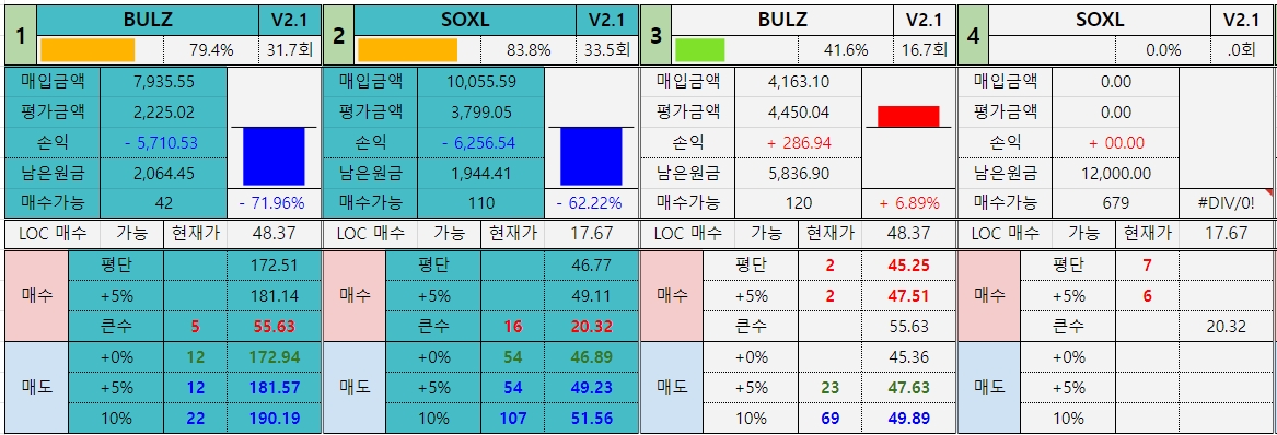 *진도율 1 : BULZ : 79.4%, SOXL : 83.8% -