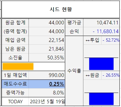 : 1~13차 사이클은 시드 $5,500 진행했으나.. 14차 사이클부터는 둘째와 동일하게 $11,000으로 변경!!!