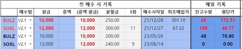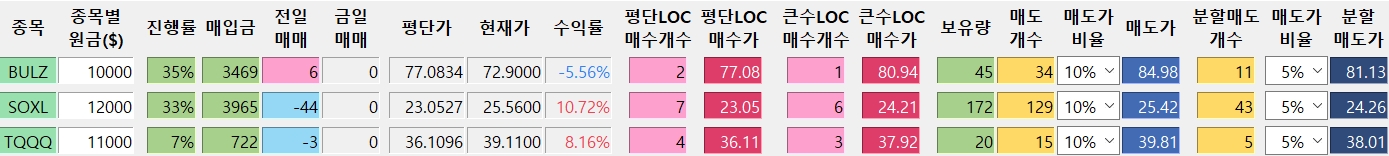 *진도율 1 : BULZ : 79.4%, SOXL : 73.7% -