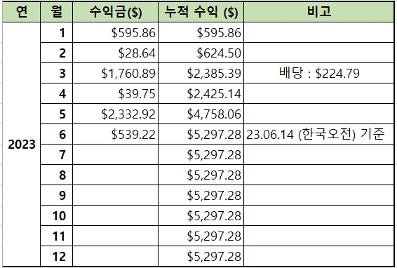 14번째 진입 23.03.24 @$25.73x10EA // 23.03.31 : 전량매도 => 1주일 대기(23.04.07 다시 시작)