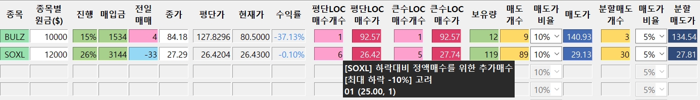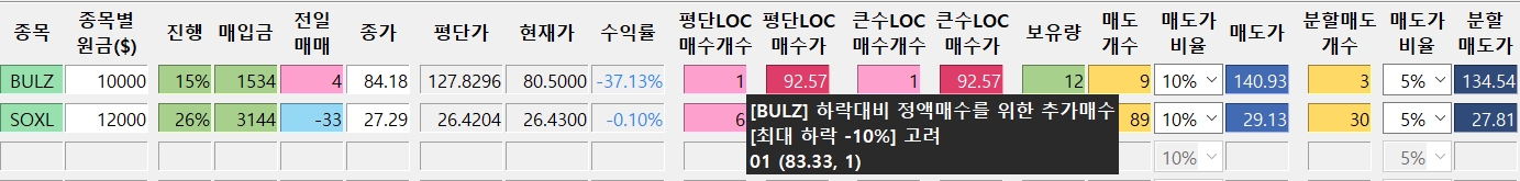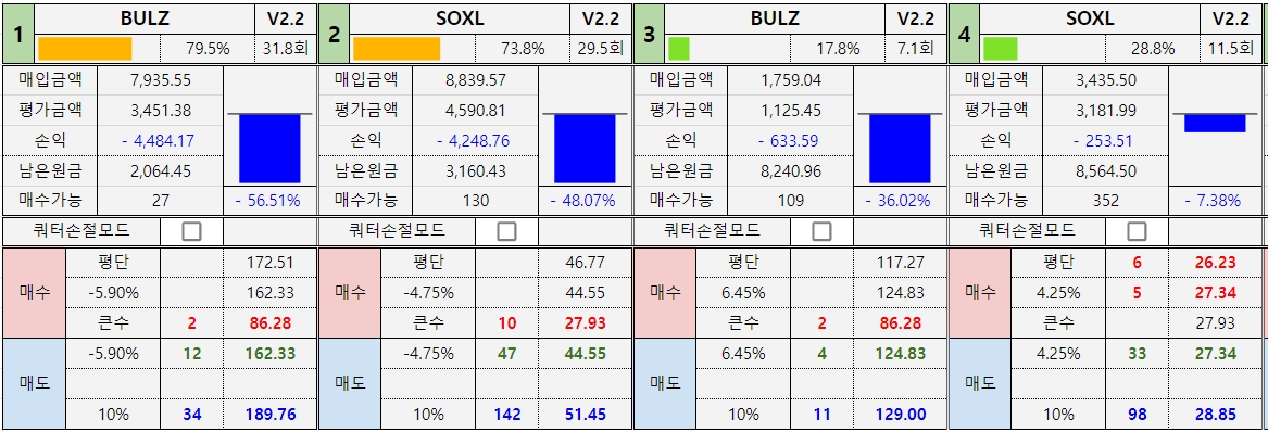 *진도율 1 : BULZ : 79.4%, SOXL : 73.7% -