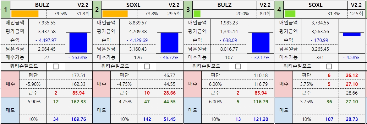 *진도율 1 : BULZ : 79.4%, SOXL : 73.7% -