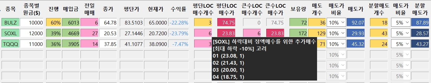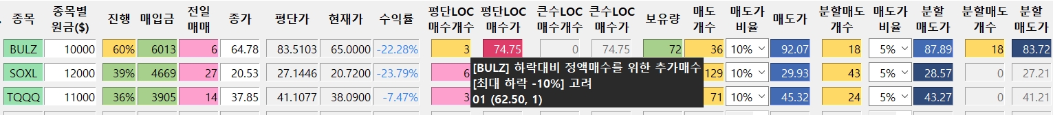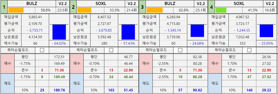 *진도율 1 : BULZ : 79.4%, SOXL : 73.7% -