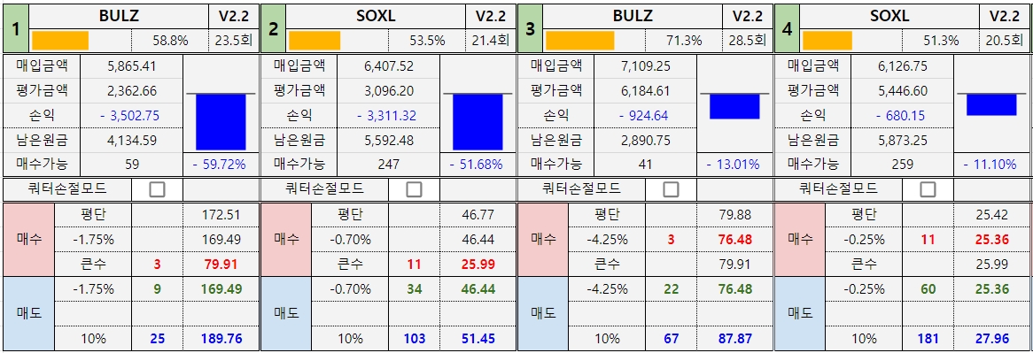 *진도율 1 : BULZ : 79.4%, SOXL : 73.7% -