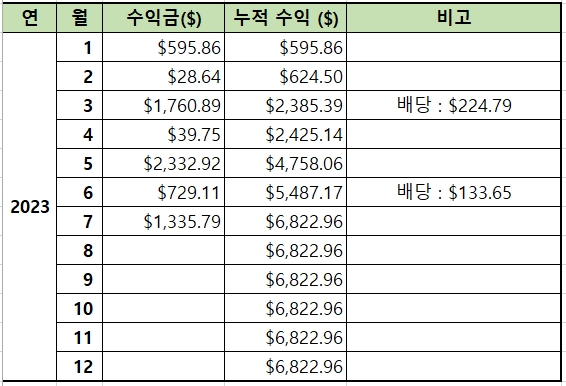 | 22.11.10~11 | 전량 매도 | 11.94~13.22 | 967 | -973.92 | 3,842.96 |