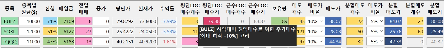 *진도율 1 : BULZ : 79.4%, SOXL : 73.7% -