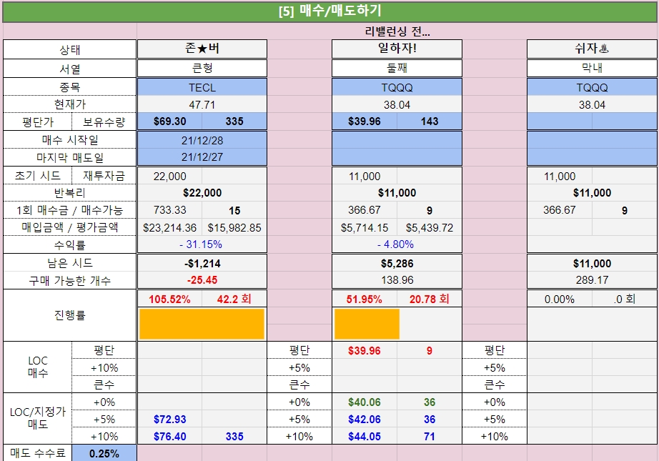 TLP - 438일차, 무한매수 - 468일차