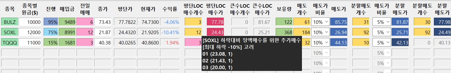 *진도율 1 : BULZ : 79.4%, SOXL : 73.7% -