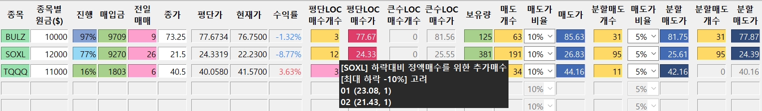 *진도율 1 : BULZ : 79.4%, SOXL : 73.7% -