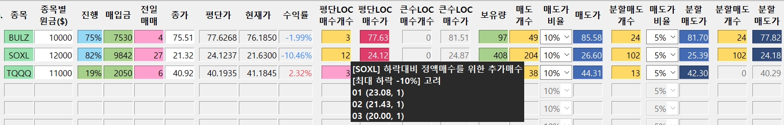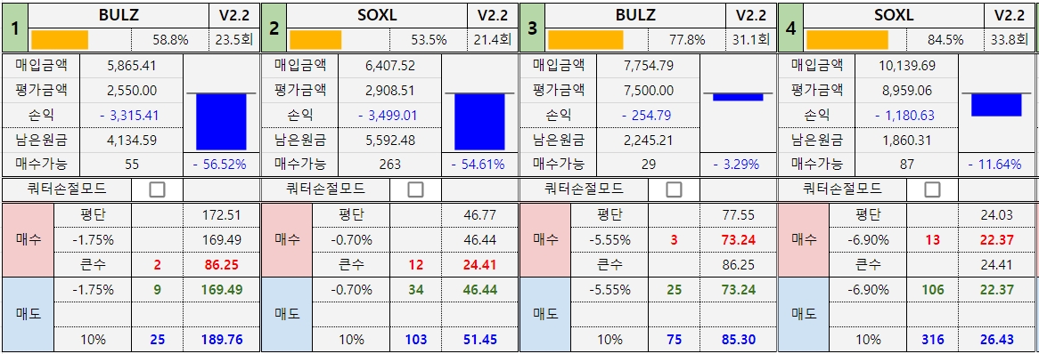 *진도율 1 : BULZ : 79.4%, SOXL : 73.7% -