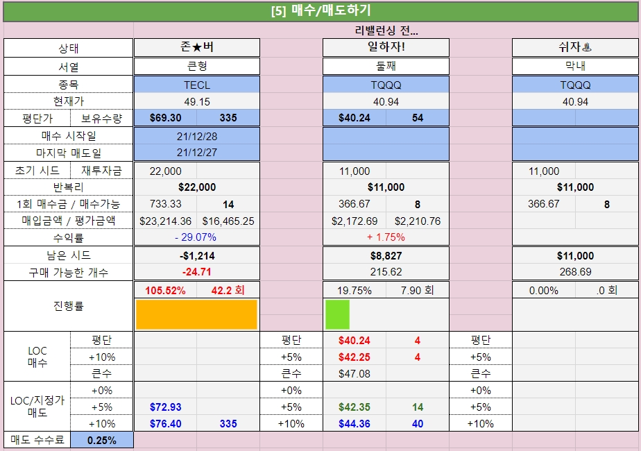 TLP - 449일차, 무한매수 - 479일차