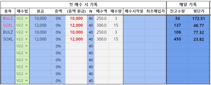 - 22.03.28 전량매도 (22.04.04 재진입!!!) - 중간 변형 매수법으로 변경..