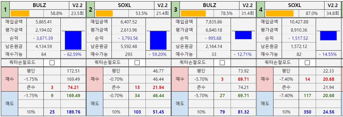 *진도율 1 : BULZ : 79.4%, SOXL : 73.7% -