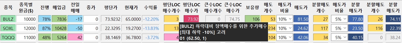 *진도율 1 : BULZ : 79.4%, SOXL : 73.7% -