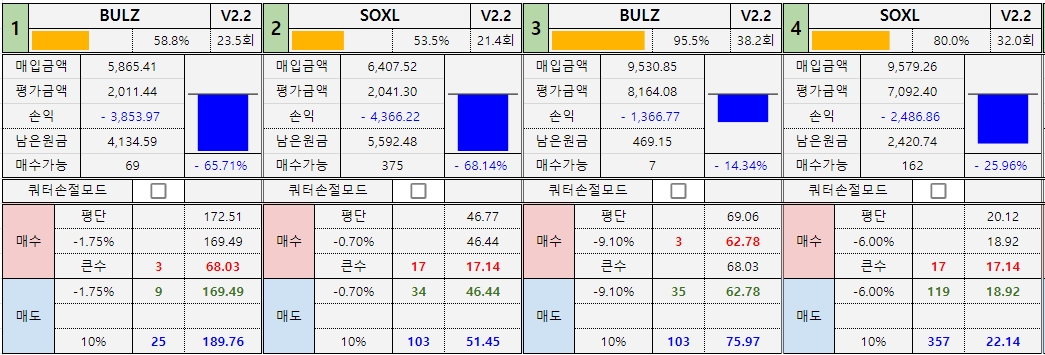 *진도율 1 : BULZ : 79.4%, SOXL : 73.7% -