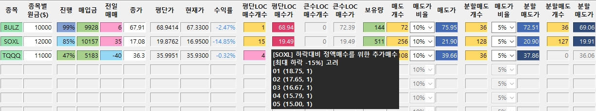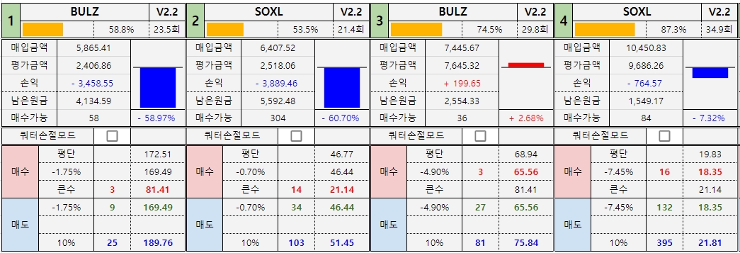 *진도율 1 : BULZ : 79.4%, SOXL : 73.7% -