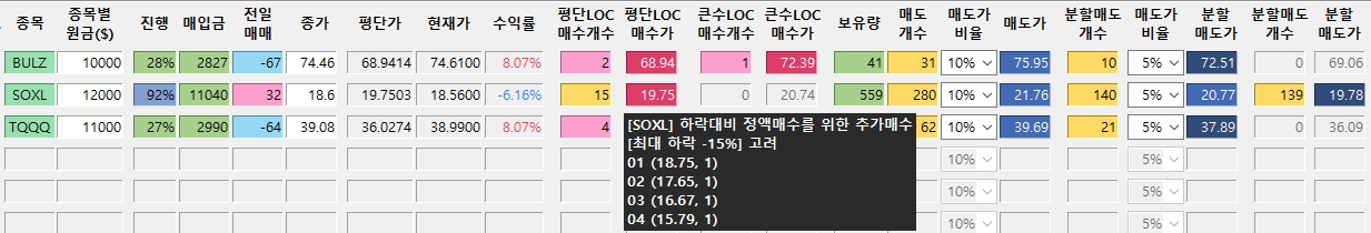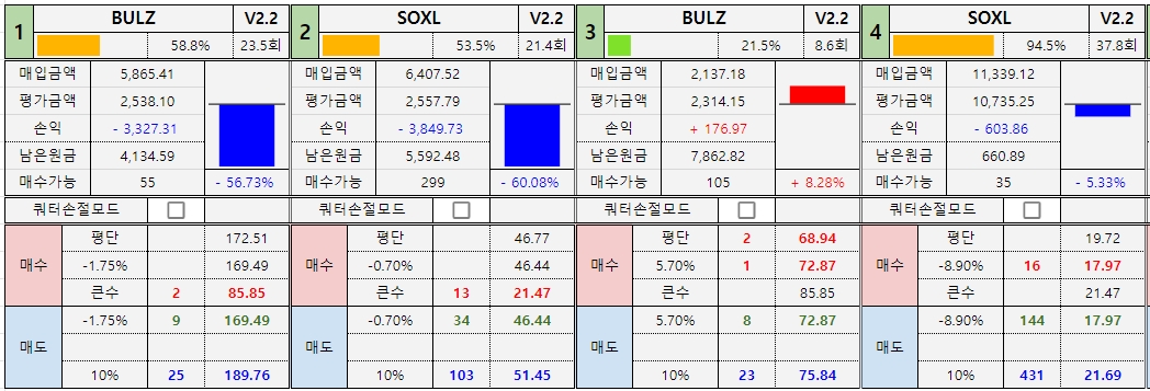 *진도율 1 : BULZ : 79.4%, SOXL : 73.7% -
