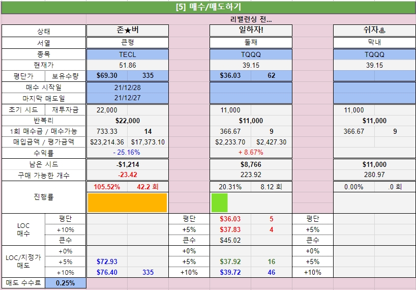 TLP - 489일차, 무한매수 - 519일차