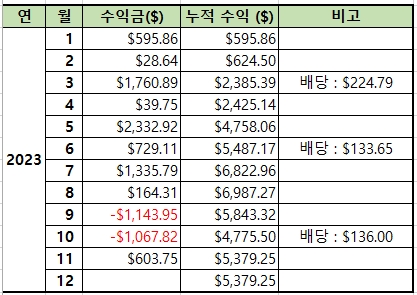 | 22.11.10~11 | 전량 매도 | 11.94~13.22 | 967 | -973.92 | 3,842.96 |