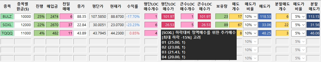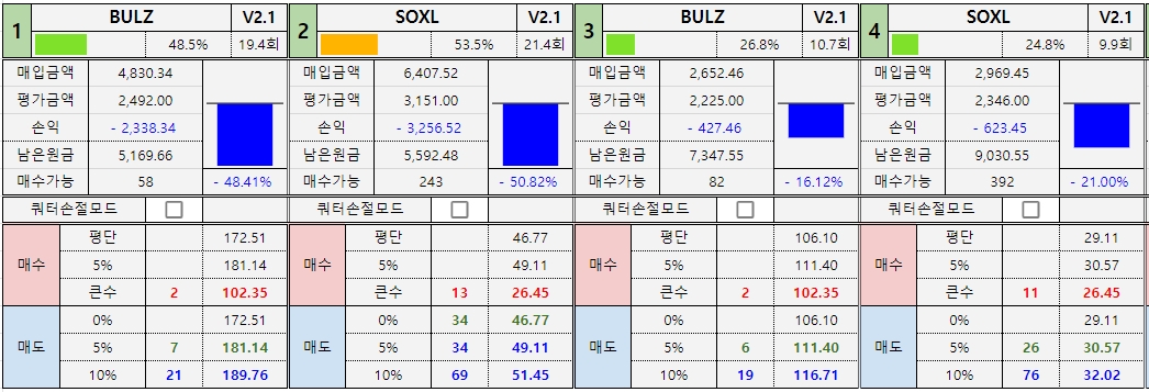 *진도율 1 : BULZ : 79.4%, SOXL : 73.7% -