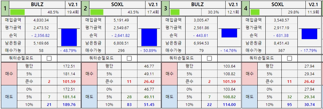 *진도율 1 : BULZ : 79.4%, SOXL : 73.7% -