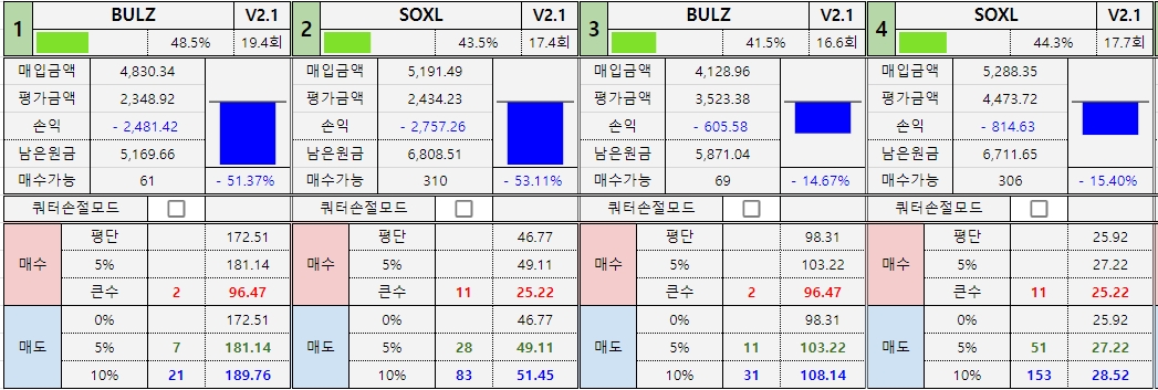 *진도율 1 : BULZ : 79.4%, SOXL : 73.7% -