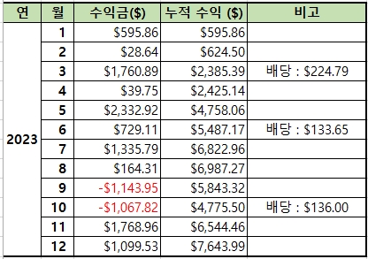 | 22.11.10~11 | 전량 매도 | 11.94~13.22 | 967 | -973.92 | 3,842.96 |
