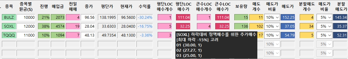 *진도율 1 : BULZ : 79.4%, SOXL : 73.7% -