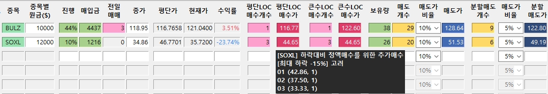 *진도율 1 : BULZ : 79.4%, SOXL : 73.7% -