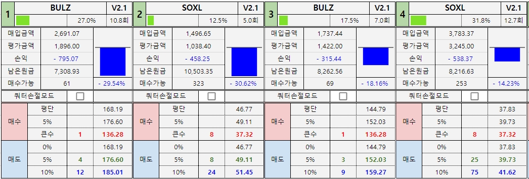 *진도율 1 : BULZ : 37.3%, SOXL : 12.5% -