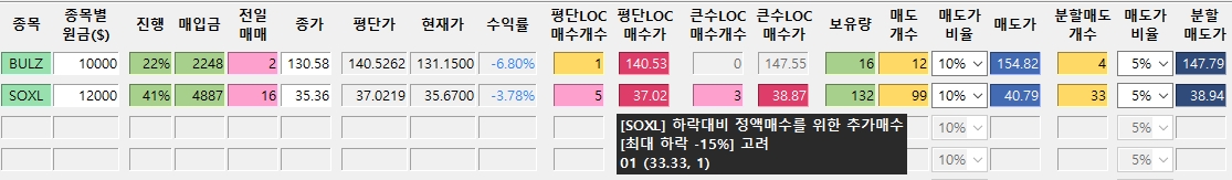 *진도율 1 : BULZ : 37.3%, SOXL : 12.5% -