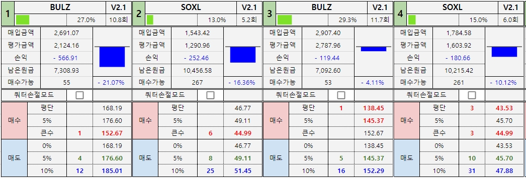 *진도율 1 : BULZ : 37.3%, SOXL : 12.5% -