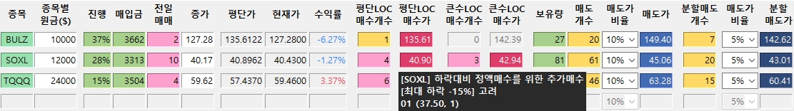*진도율 1 : BULZ : 37.3%, SOXL : 12.5% -