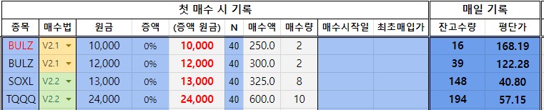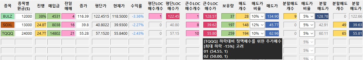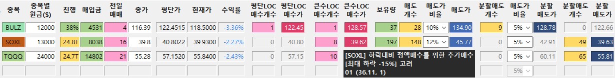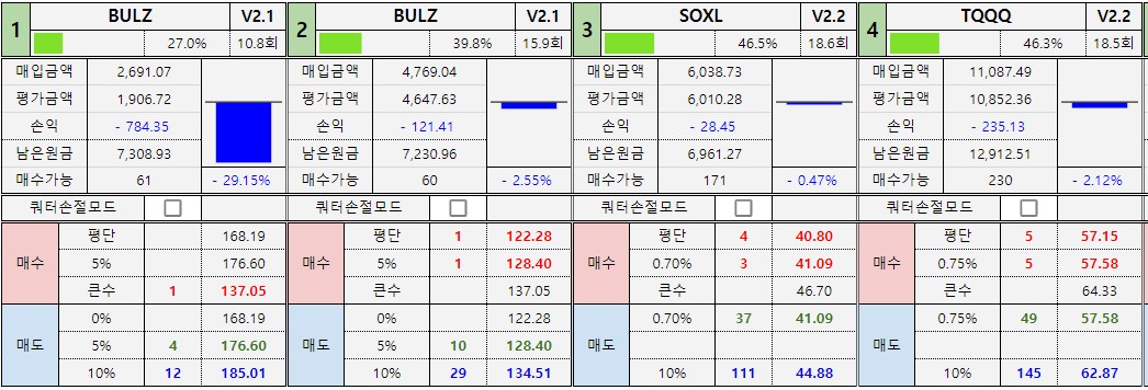 *진도율 1 : BULZ : 27%, SOXL : 0% -
