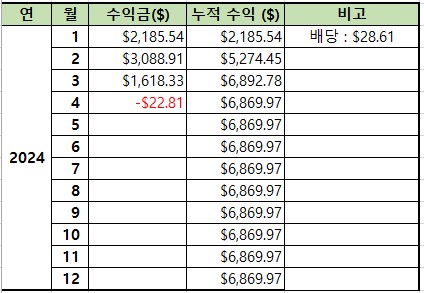 | 일자 | 쿼터손절차수 | 매도가($) | 수량 | 손실액($) | 수수료($) | 총손실($) | 누적손실($) |